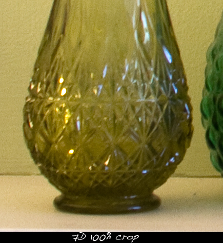 I think there is a little backfocus effect on the 7D image (the wall appears to be sharper than the vase).