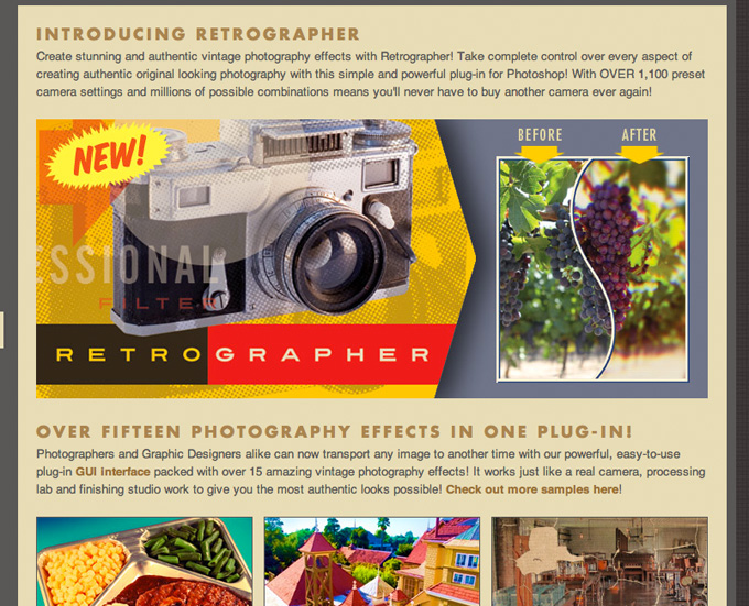 Today I thought I would take a quick look at a new plug in for Photoshop called “Retrographer” by Mr. Retro. In the past I have written about quite a few plug ins and apps that were very fun to use but most of the time they get old pretty quick, especially when they are so gimmicky and not so customizable. So here I am once again messing around with another plug in and this is one that I have been really getting into even though it can be a bit over the top at times. What I like about it the most is its feature set and the way you can customize every single setting from lens, flash, film, lab, special effects, and some really cool finishing and framing effects. It is the most customizable plug in yet and you can go from mild to wild using the really simple but effective interface.