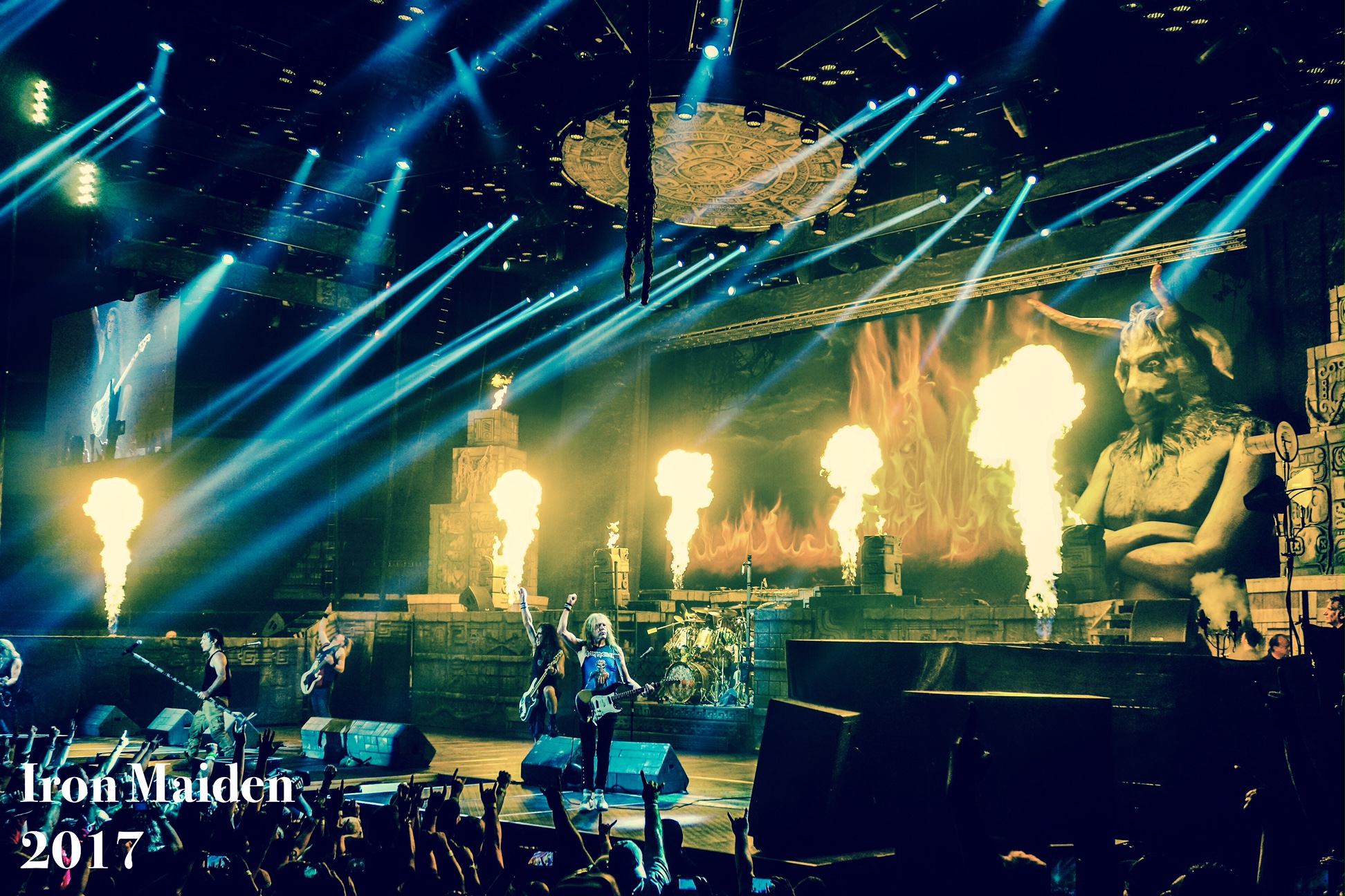 I was sitting lower balcony about 5 rows up and almost even eyed with Steve and Jannick (though the Union Jack shot with Bruce for “The Trooper” was a week earlier from a more side- stage position). Regardless there is so much visually to capture at a Maiden gig that I have hundreds of files but chose these four to pay respects to what the original high-end compact is still capable of.